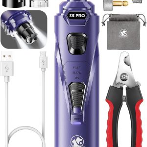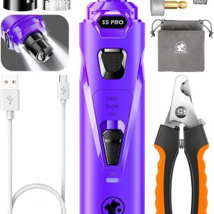 Dog Nail Grinder with 2 LED Lights Powerful 2 Speeds Super Quiet Dog Nail Trimmers with 3 Grinding Wheels Rechargeable Pet Dog Nail Clippers for Large Medium Puppy Dogs Dog Nail File Cat Nail Clipper