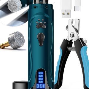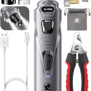 YABIFE Dog Nail Trimmers and Dog Nail Clippers Kit, Whisper Quiet Electric Grinder with Light, for Small, Medium, Large Dogs, Cats Toenail Grooming, 3 Speeds