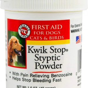 Miracle Care Kwik Stop Styptic Powder for Dogs, Cats and Birds, 0.5 Ounce, Fast Acting Blood Stop Powder with Pain Relieving Benzocaine