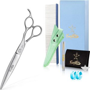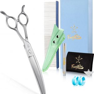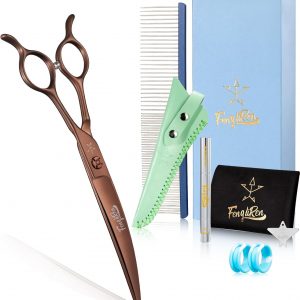 High-end Professional Dog Grooming Curved Thinning Scissors Teeth Blending Shears Pet Texturizing Thinner Blender Shears 7 Inch Extremely Very Sharp Made Of Stainless Steel Alloy For Dog Cat Groomer