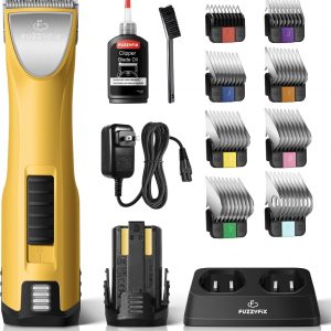 Professional Dog Clippers for Grooming – 2 Speed for Thick Curly Matted Coats, Low Noise Cordless Pet Hair Trimmer with Detachable A5 Blade & Metal Guide Combs Kit for Horse Animal Breeds