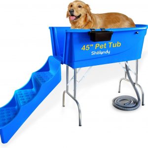 SHELANDY 45″ Pet Grooming Bathtub Dog Wash Station | Heavy Duty Bathing Tub (Bathtub & Stairs Combo)
