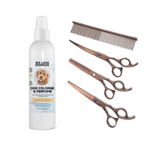 We Love Doodles Dog Cologne & Perfume (Fresh Cotton) and Dog Grooming Scissors Kit Bundle – Odor Eliminator Spray and Grooming Scissors Kit – Best Grooming Scissors For Goldendoodles – Made In USA