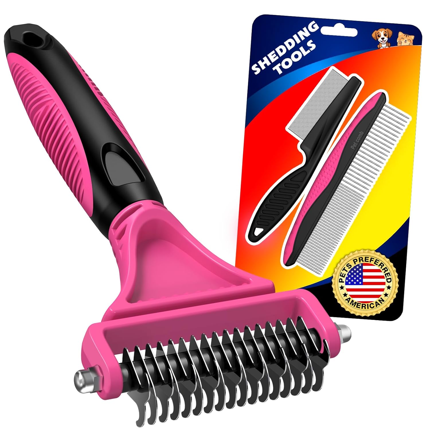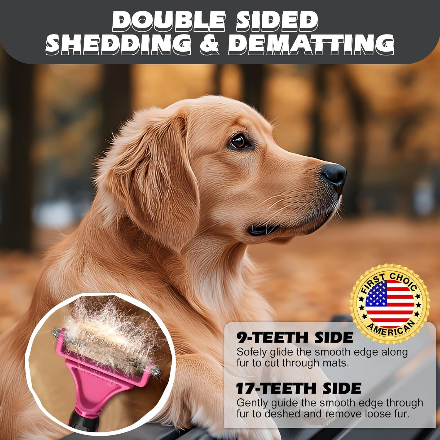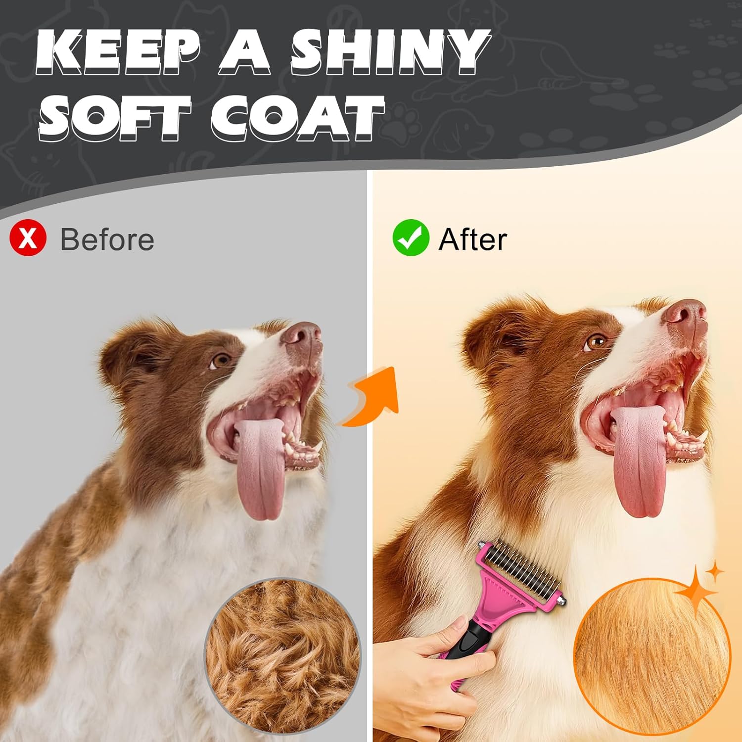 - 【Undercoat Rake】Our undercoat rake is perfect for de-shedding and de-matting medium to long-haired pets. Featuring a double-sided design, the 9-tooth side can be used for stubborn mats, tangles, and knots, while the 17-tooth side can be used to thin and remove loose hair from dogs and cats