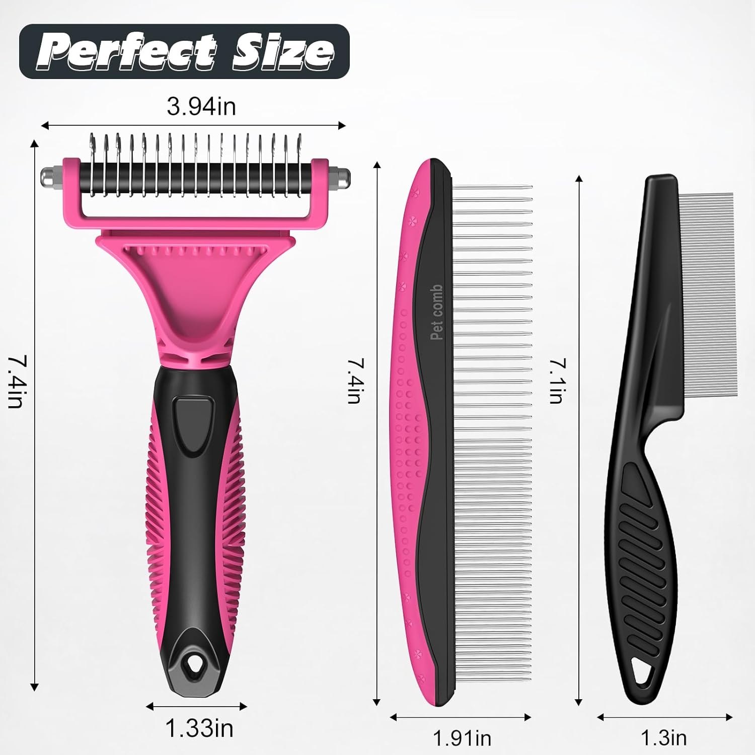 - 【3PCS Pet Grooming Kit】The dog deshedding brush that professional pet groomers recommend is made of premium stainless steel and soft TPR rubber, safe, comfortable, and durable. Not only can it effectively de-fur and de-tangle, but it can also relieve your pet’s skin problems and make your pet’s coat shiny and healthy