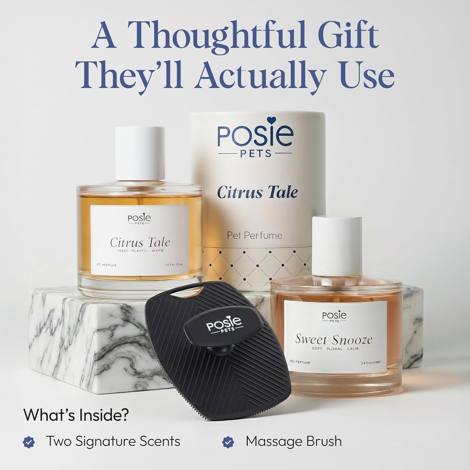 • Spoil Their Furry Family Member: Complete grooming set with Citrus Tale and Sweet Snooze deodorizing sprays plus a silicone massage brush; This dog cologne is perfect for pet parents who want the best