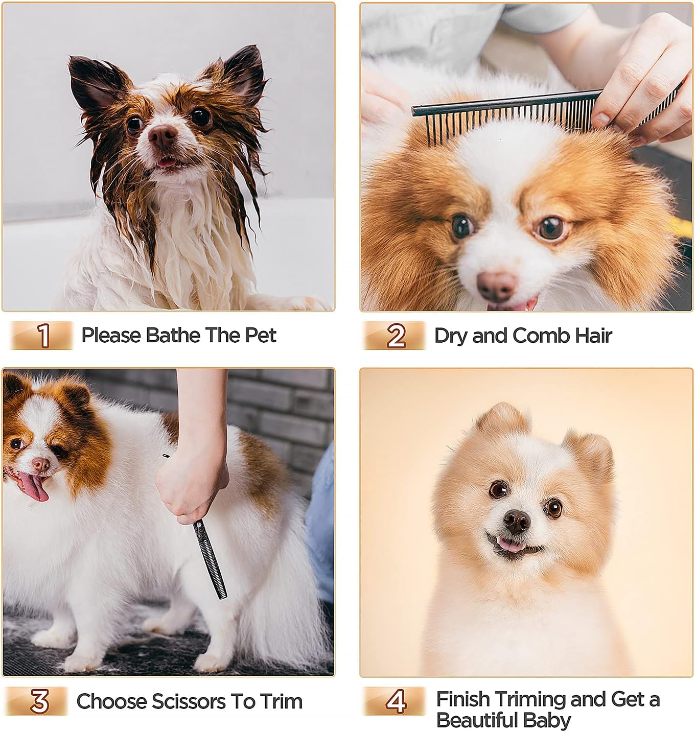 - 【6 in 1 Dog Grooming Scissors Set】The dog grooming scissors set comes with 2 straight scissors, 1 thinning scissor, 1 curved scissor, 1 grooming comb and 1 storage case