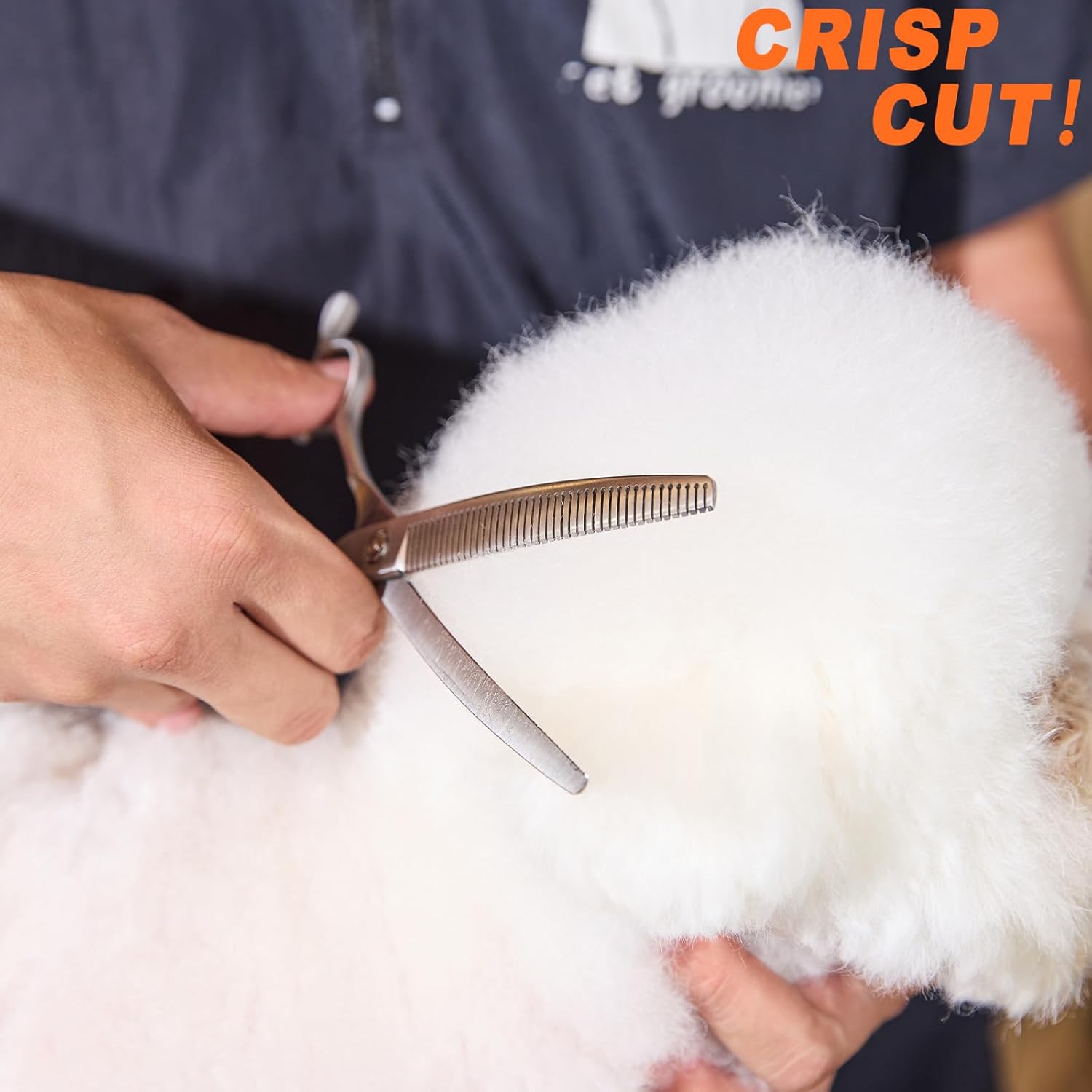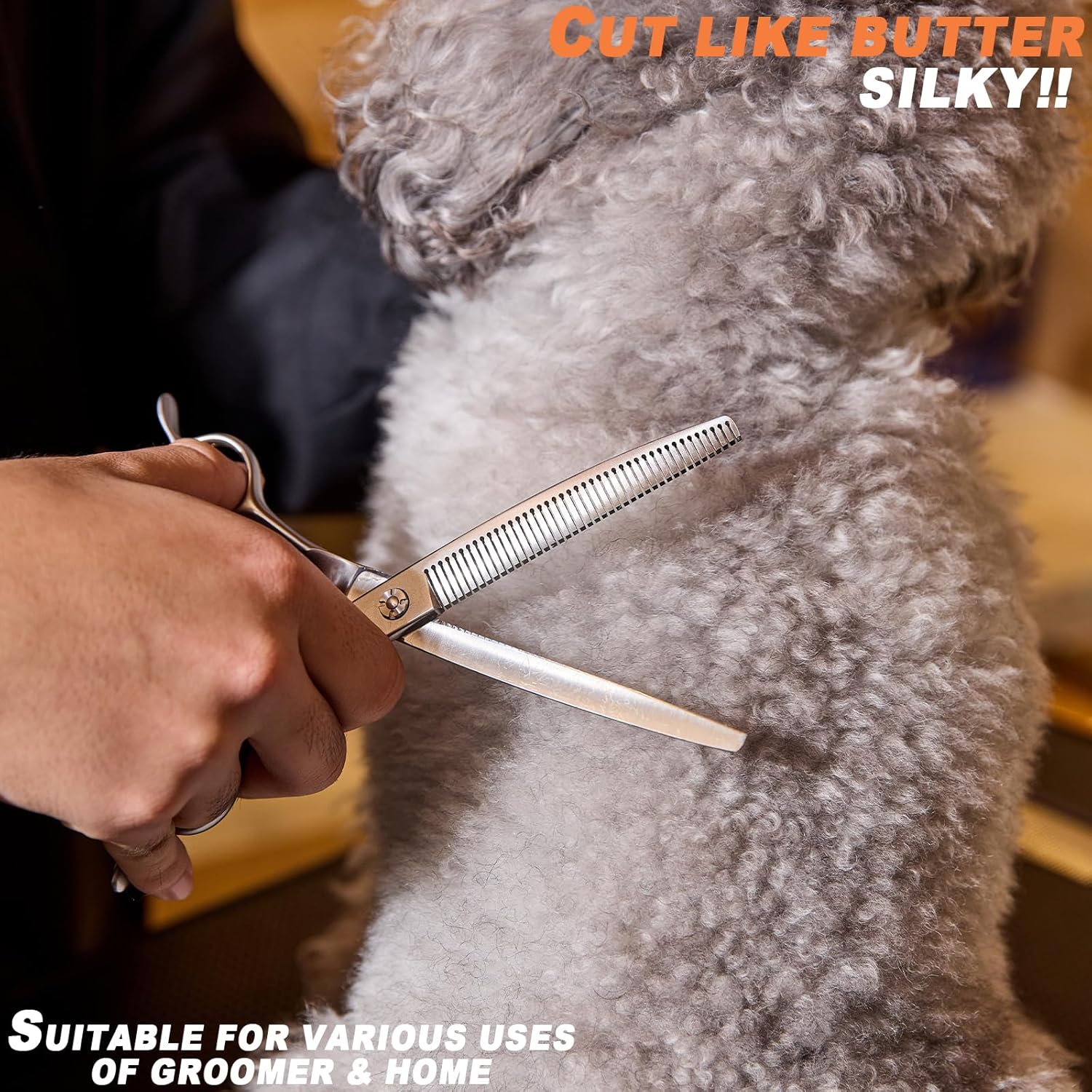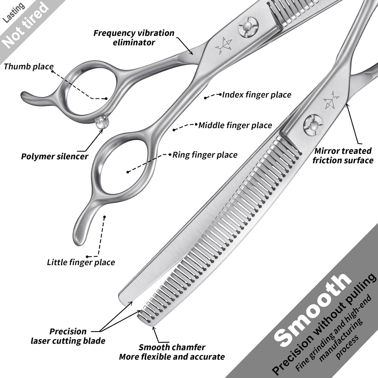 - ⭐Scope: Suitable for high-end groomers and cosmetologists, pet masters, as well as families, these scissors for hair are safe and easy to use on dogs, cats, horses, and other animals. At a weight of only 2.53 ounces, you can easily handle these shears to cut animal hair in a dimensional look as you want