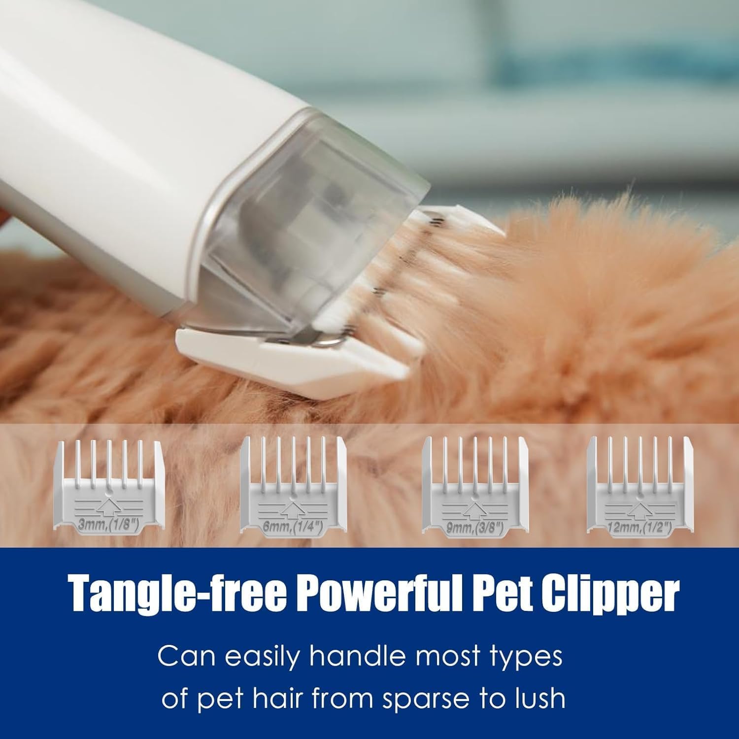 - 【Comfort Guard Combs For All Needs & User-Friendly】Our dog grooming vacuum is incredibly user-friendly, featuring 4 detachable guard combs (3mm/6mm/9mm/12mm) for clipping hair of different lengths. The detachable guard combs give you the freedom to control the length of your pet’s hair according to their look, allowing you to trim your pet safely even if you’re a first-time groomer. All accessories are easy to disassemble, giving your pet a new look with professional tools and minimal effort.